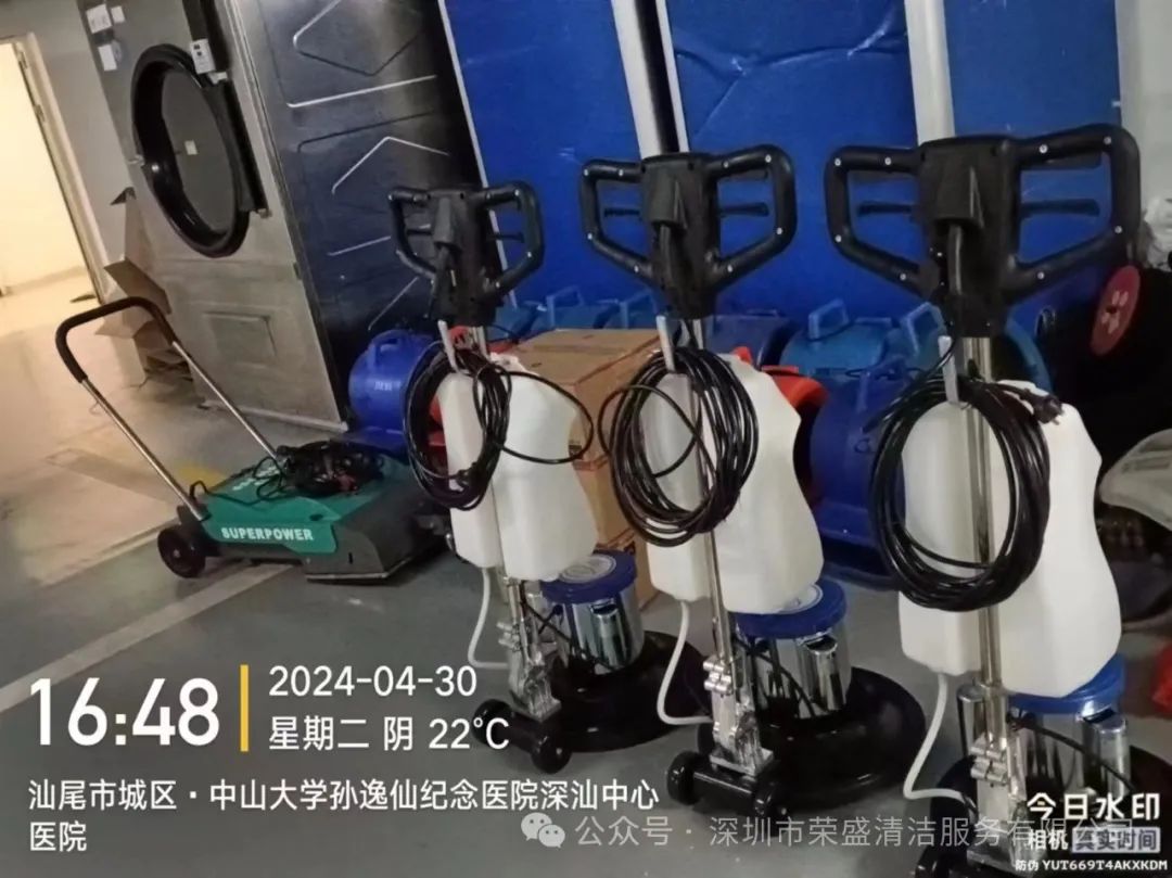 装备陆续抵达深汕中心医院保洁项目部,现场事情职员小心卸货,仔细组装,全心培训,全身心投入五一正式进驻前的准备事情。